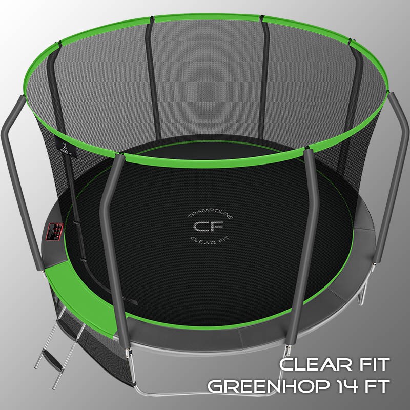 Каркасный батут Clear Fit GreenHop 14Ft уличный кумитеспортБатуты Clear Fit можно устанавливать как под открытым небом, так и в помещениях. Их легко устанавливать, разбирать, хранить и перемещать.