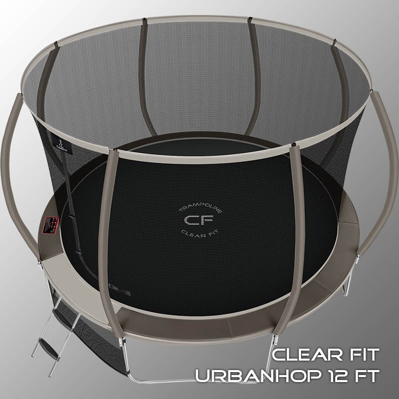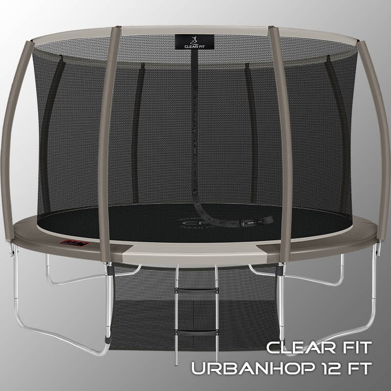 В 2026 году представлена обновленная линейка с улучшенной конструкцией каркаса. Усиление достигнуто за счет использования прочных Т-образных кронштейнов из металла толщиной 1.9 мм. Кроме того, в комплектацию добавлен карман для обуви. Каркасный батут с защитной сеткой Clear Fit серии UrbanHop — отличаются комфортом и надежностью. Надежная рама из качественных комплектующих, прочная защитная сеть снабжена прямым креплением к прыжковому полотну и дополнительной защитой входа, наверху каркасное жесткое крепление, сеть не провисает и не слетает во время тренировок. Увлекательный, полезный и безопасный тренажер для всей семьи. Батуты серии UrbanHop 10Ft, 12Ft, 14Ft и 16Ft поставляются в оптимальной для комфорта и безопасности комплектации: батут, верхняя защитная сеть, защитный мат, лестница и карман для обуви. Батут размером в 12 футов с прыжковой поверхностью 3.21 м идеально подходит для пользователей любого возраста, размеры полотна позволяют комфортно тренироваться взрослым и развлекаться детям, включая подростков. Верхняя защитная сеть оберегает от падений, усиленная молния и дополнительная защита входа уберегут малышей от случайного входа или падения. Надежный каркас из оцинкованной стали, качественные комплектующие и погодостойкие гальванизированные метизы рамы делает батут безопасным, устойчивым, надежным, гарантируют полную защиту от коррозии и долгий срок службы. Максимальный вес пользователя батута UrbanHop 12Ft — до 200 кг. Батуты UrbanHop предназначены не только для детских игр, но и для фитнеса. Благодаря инновационной системе крепления защитной сети значительно увеличено рабочее пространство и надежность конструкции. Тренировки на батуте — это отличная аэробная нагрузка: улучшение общей физической формы, заряд положительных эмоций, улучшение работы кардиоваскулярной системы, развитие чувства равновесия и координации в пространстве для пользователей любого возраста. Занятия на свежем воздухе укрепляют иммунитет, снабжают организм кислородом, повышают выносливость как у детей, так и у взрослых. Именно поэтому мы используем только высококачественные комплектующие с большим запасом прочности. В большинстве случаев батуты данного типа устанавливаются под открытым небом, обязательные требования к материалам — это влагостойкость, термоустойчивость, в том числе и к низким температурам, переносимость ультрафиолетовых лучей и износостойкость. Конструкция для обеспечения безопасности выполнена из гальванизированной стали, диаметр стальных труб W-опор и каркаса 38 мм. Каркас из труб толщиной 1.3 мм соединяется с помощью мощных сварных Т-образных кронштейнов из металла толщиной 1.9 мм и высококачественных гальванизированных метизов. Качественная двойная оцинковка всех труб конструкции исключает коррозию, увеличивает срок эксплуатации батута. Прыжковое полотно — это основной элемент батута. Материал прыжкового полотна Перматрон (Permatron) — эластичный материал, способный возвращаться в исходное состояние при постоянном воздействии с разным усилием. Термообработка волокон материала обеспечивает высокую прочность на разрыв и стрессоустойчивость материала. Это влагостойкий, эластичный термоустойчивый материал, не поддающийся распаду от ультрафиолета. Пружины выполнены из гальванизированной стали толщиной 3.1 мм, устойчивы к коррози
