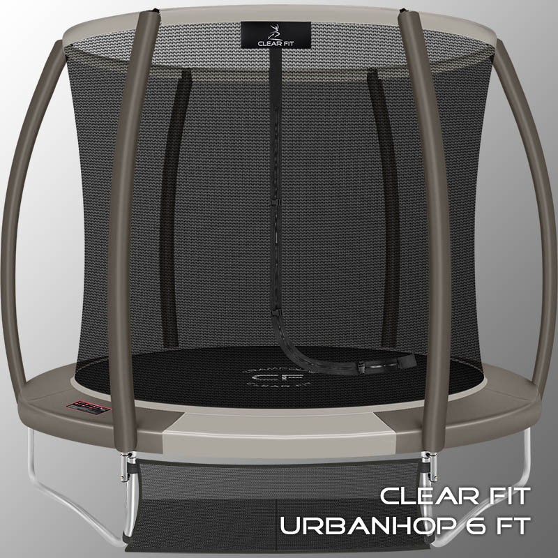 В 2026 году представлена обновленная линейка с улучшенной конструкцией каркаса. Усиление достигнуто за счет использования прочных Т-образных кронштейнов из металла толщиной 1.9 мм. Кроме того, в комплектацию добавлен карман для обуви. Каркасный батут с защитной сеткой Clear Fit серии UrbanHop — отличаются комфортом и надежностью. Надежная рама из качественных комплектующих, прочная защитная сеть снабжена прямым креплением к прыжковому полотну и дополнительной защитой входа, наверху каркасное жесткое крепление, сеть не провисает и не слетает во время тренировок. Увлекательный, полезный и безопасный тренажер для всей семьи. Батуты серии UrbanHop 6Ft и 8Ft поставляются в оптимальной для комфорта и безопасности комплектации: батут, верхняя защитная сеть, защитный мат и карман для обуви. Размер батута 6 футов с прыжковой поверхностью 1.42 м и его легко разместить на небольшом участке, он подойдет для детских игр и для тренировок. Верхняя защитная сеть оберегает от падений, усиленная молния и дополнительная защита входа уберегут малышей от случайного входа или падения. Надежный каркас из гальванизированной стали, качественные комплектующие и погодостойкие метизы рамы делают батут безопасным, устойчивым, надежным, гарантируют полную защиту от коррозии и долгий срок службы. Максимальный вес пользователя батута UrbanHop 6Ft — до 130 кг. Батуты UrbanHop предназначены не только для детских игр, но и для фитнеса. Благодаря инновационной системе крепления защитной сети значительно увеличено рабочее пространство и надежность конструкции. Тренировки на батуте — это отличная аэробная нагрузка: улучшение общей физической формы, заряд положительных эмоций, улучшение работы кардиоваскулярной системы, развитие чувства равновесия и координации в пространстве для пользователей любого возраста. Занятия на свежем воздухе укрепляют иммунитет, снабжают организм кислородом, повышают выносливость как у детей, так и у взрослых. Именно поэтому мы используем только высококачественные комплектующие с большим запасом прочности. В большинстве случаев батуты данного типа устанавливаются под открытым небом, обязательные требования к материалам — это влагостойкость, термоустойчивость, в том числе и к низким температурам, переносимость ультрафиолетовых лучей и износостойкость. Конструкция для обеспечения безопасности выполнена из гальванизированной стали, диаметр стальных труб W-опор 34 мм и каркаса 38 мм. Каркас из труб толщиной 1.2 мм соединяется с помощью мощных сварных Т-образных кронштейнов из металла толщиной 1.9 мм и высококачественных гальванизированных метизов. Качественная двойная оцинковка всех труб конструкции исключает коррозию, увеличивает срок эксплуатации батута. Прыжковое полотно — это основной элемент батута. Материал прыжкового полотна Перматрон (Permatron) — эластичный материал, способный возвращаться в исходное состояние при постоянном воздействии с разным усилием. Термообработка волокон материала обеспечивает высокую прочность на разрыв и стрессоустойчивость материала. Это влагостойкий, эластичный термоустойчивый материал, не поддающийся распаду от ультрафиолета. Пружины выполнены из гальванизированной стали толщиной 3 мм, устойчивы к коррозии и долговечны, длина пружин 140 мм, для батута размером в 6 футов 30 пружин по периметру обеспечивают 