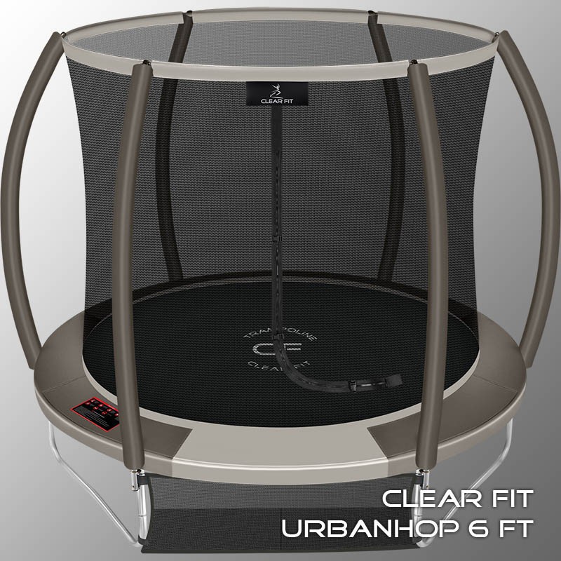 В 2026 году представлена обновленная линейка с улучшенной конструкцией каркаса. Усиление достигнуто за счет использования прочных Т-образных кронштейнов из металла толщиной 1.9 мм. Кроме того, в комплектацию добавлен карман для обуви. Каркасный батут с защитной сеткой Clear Fit серии UrbanHop — отличаются комфортом и надежностью. Надежная рама из качественных комплектующих, прочная защитная сеть снабжена прямым креплением к прыжковому полотну и дополнительной защитой входа, наверху каркасное жесткое крепления, сеть не провисает и не слетает во время тренировок. Увлекательный, полезный и безопасный тренажер для всей семьи. Батуты серии UrbanHop 6Ft и 8Ft поставляются в оптимальной для комфорта и безопасности комплектации: батут, верхняя защитная сеть, защитный мат и карман для обуви. Размер батута 8 футов с прыжковой поверхностью 2.015 м легко разместить на любом участке, он подойдет и для детских игр, и для тренировок. Верхняя защитная сеть оберегает от падений, усиленная молния и дополнительная защита входа уберегут малышей от случайного входа или падения. Надежный каркас из гальванизированной стали, качественные комплектующие и погодостойкие метизы рамы делают батут безопасным, устойчивым, надежным, гарантируют полную защиту от коррозии и долгий срок службы. Максимальный вес пользователя батута UrbanHop 8Ft — до 160 кг.