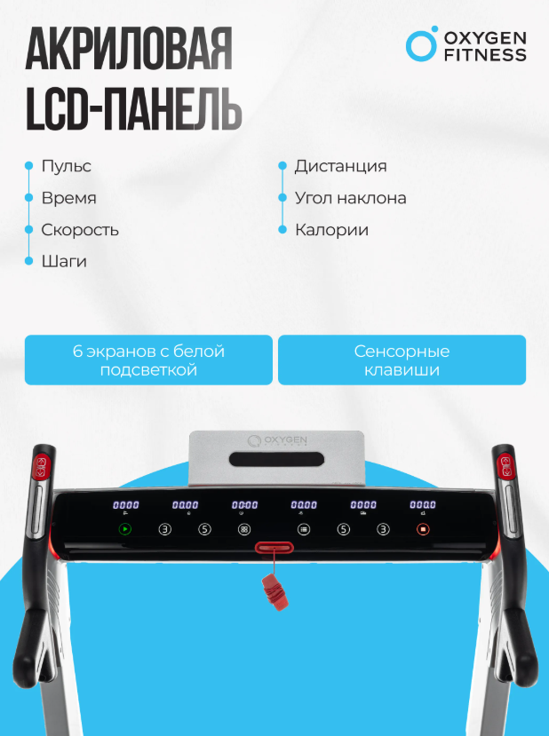 Беговая дорожка домашняя OXYGEN FITNESS M-CONCEPT SPORT (SMOKY)Серия M-Concept - это уникальные тонкие беговые дорожки от OXYGEN FITNESS™. Толщина тренажера в сложенном виде составляет всего35 см. (или30 см. при условии снятия небольших поручней). Дорожка легко помещается под кровать, в кладовку или любое другое небольшое место - хранить ее можно и в горизонтальном, и в вертикальном состоянии.