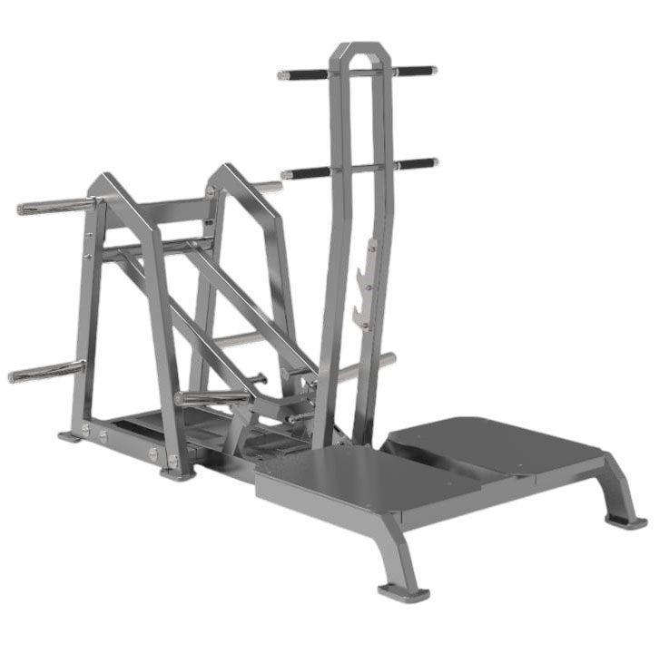 FTX-82B20 Приседание с поясом (колодец) от FITEX PRO — профессиональный тренажёр для безопасной и мощной проработки ног и ягодиц Конструкция и особенности Каркас тренажёра изготовлен из прочной конструкционной стали Q235 с профилем основных элементов 40×80×3 мм. Это обеспечивает жёсткость и устойчивость конструкции даже при работе с весами до 250 кг. Сварная рама выдерживает интенсивную эксплуатацию в условиях профессионального спортзала, сохраняя точность геометрии и плавность хода. Поверхность тренажёра покрыта порошковой краской, устойчивой к царапинам, коррозии и влаге. Такое покрытие не только защищает металл, но и придаёт тренажёру современный внешний вид. Надёжная платформа обеспечивает устойчивость и безопасность при выполнении упражнений, а широкая база гарантирует комфортную постановку ног. FTX-82B20 оснащён четырьмя накопителями для хранения дисков, что делает организацию тренировочного пространства более удобной и безопасной. Конструкция позволяет работать с любыми видами олимпийских дисков, обеспечивая стабильное и равномерное распределение нагрузки. Преимущества тренажёра FTX-82B20