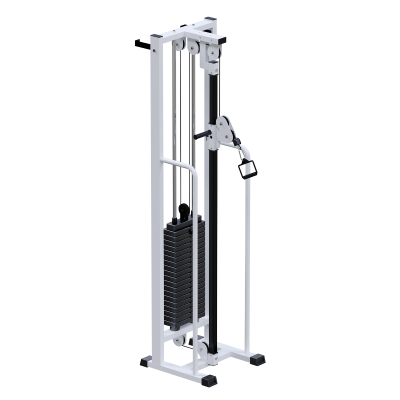 Блочная рама позволяет выполнять упражнения в различных плоскостях и диапазонах движения, что делает её универсальным инструментом для индивидуальных тренировок и медицинских программ. Конструктивные преимущества Каркас тренажёра изготовлен из стального профиля 80×40 мм с применением металла толщиной 2 мм. Конструкция сочетает компактную площадь размещения и высокую жёсткость, достаточную для профессиональной эксплуатации. Грузоблочный стек состоит из металлических обрезиненных плит по 5 кг с хромированными направляющими. Регулировка нагрузки осуществляется при помощи металлической иглы-фиксатора. Передача усилия реализована через трос диаметром 5 мм в ПВХ-оплётке с разрывным усилием 500 кг и допустимой максимальной нагрузкой до 800 кг, что обеспечивает высокий запас прочности. Верхний и нижний блоки имеют свободное вращение и работают на подшипниках качения закрытого типа, обеспечивая плавность хода и минимальный износ. Тренажёр окрашен порошковой термоотверждаемой краской, устойчивой к коррозии и механическим повреждениям. Амортизирующие подпятники позволяют устанавливать тренажёр без крепления к полу, при этом предусмотрена возможность крепления к стене при необходимости. Технические характеристики