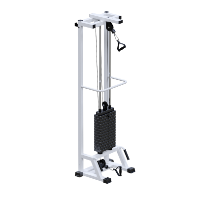 Свободное вращение верхнего и нижнего блоков обеспечивает естественную траекторию движения и адаптацию упражнений под индивидуальные задачи восстановления. Конструктивные преимущества Каркас тренажёра изготовлен из стального профиля 80×40 мм и 50×50 мм с толщиной металла 2 мм. Такая конструкция обеспечивает оптимальное сочетание жёсткости, устойчивости и компактности при профессиональной эксплуатации. Грузоблочный стек состоит из металлических обрезиненных плит по 5 кг с хромированными направляющими. Регулировка нагрузки осуществляется при помощи металлической иглы-фиксатора. Передача усилия реализована через трос диаметром 5 мм в ПВХ-оплётке с разрывным усилием 500 кг и допустимой рабочей нагрузкой до 800 кг, формируя высокий запас прочности. Блоки работают на подшипниках качения закрытого типа, обеспечивая плавный ход и минимальный износ. Все металлические элементы окрашены порошковой термоотверждаемой краской, устойчивой к коррозии и механическим повреждениям. Монтажные планки позволяют при необходимости закрепить раму к стене. Амортизирующие подпятники из поливинилхлорида дают возможность установки без крепления к полу и эффективно снижают вибрационные нагрузки. Технические характеристики