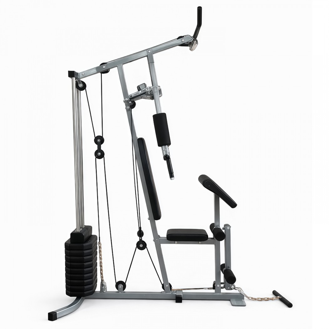 Многофункциональный силовой тренажер DFC D70144 айрон кингВ конструкции предусмотрено 9 свободных блоков и 1 встроенный весовой блок весом46 кг. Такая система позволяет гибко настраивать нагрузку под уровень подготовки пользователя — от начинающего до уверенного спортсмена. Силовой комплекс удобно использовать как для набора мышечной массы, так и для поддержания формы.