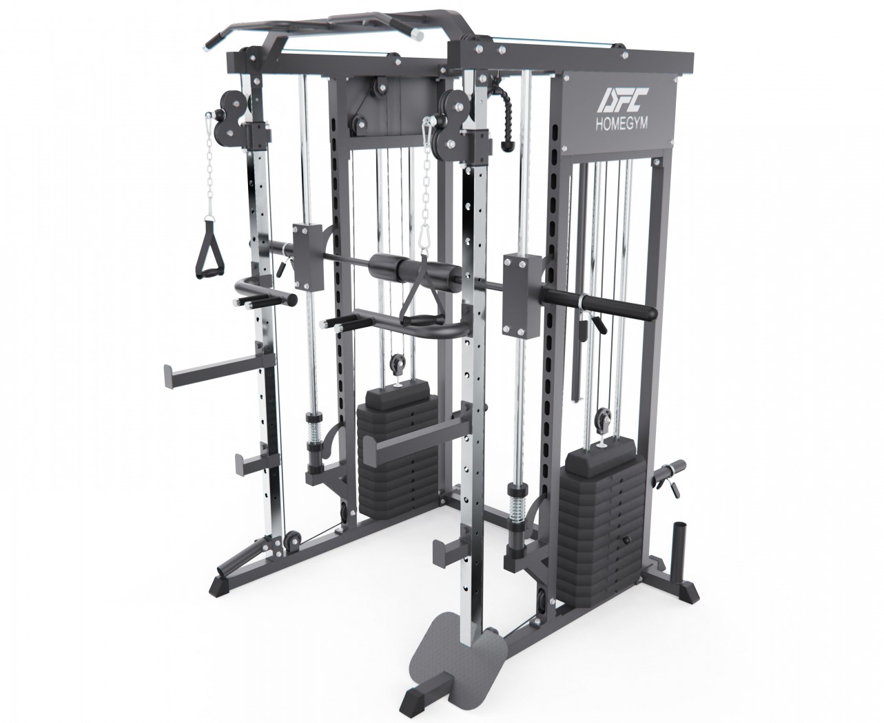 Мультистанция, машина Смита, кроссовер DFC D8201 armssportМашина Смита DFC D8201 при своей многофункциональности остаётся компактной и удобной в использовании. Она не занимает много места, легко вписывается в домашний тренировочный уголок и обеспечивает комфортную, безопасную и эффективную тренировку.