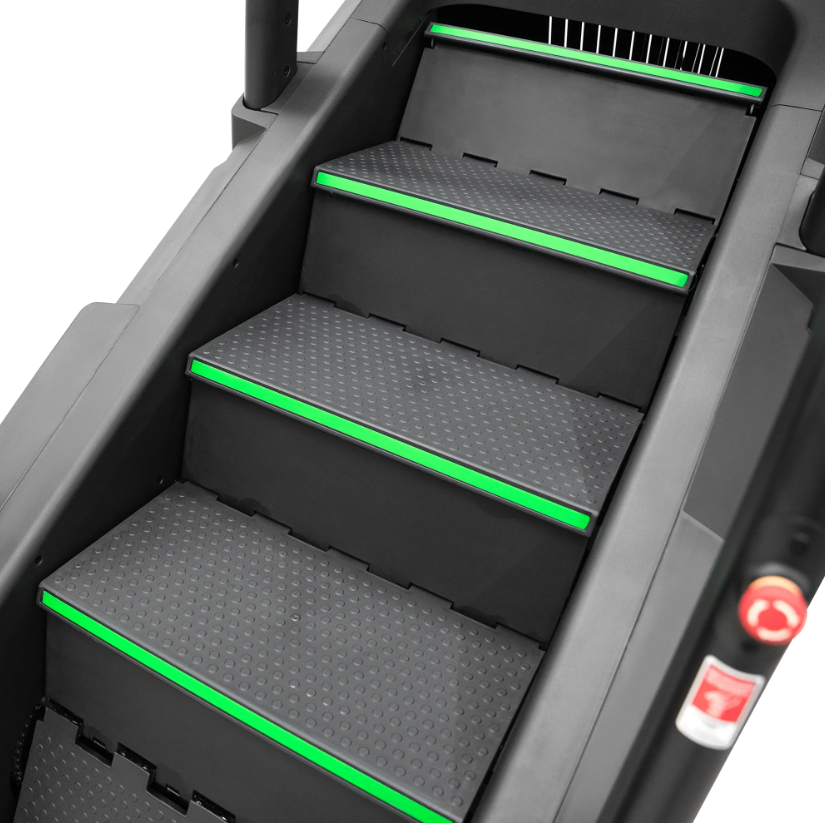Усиленная конструкция, широкий диапазон скоростей, эргономичные поручни и нескользящие ступени обеспечивают уверенную и безопасную тренировку на всех уровнях подготовки. Инновационные технологии: Система EMS (электромагнитное сопротивление) для точного контроля нагрузки Современный LED-дисплей с интуитивным управлением Удобные рукоятки с кнопками быстрой регулировки Беспроводная зарядка для смартфона Расширенный функционал: 40 программ тренировок Контроль пульса, шагов, дистанции, калорий, уровня нагрузки 15 уровней интенсивности: от 14 до 160 шагов в минуту Угол наклона 35° (75%) Размер ступени: 500 × 260 ×183 мм3 активные ступени, 9 в общей конструкции Безопасность и удобство: Самоблокирующаяся тормозная система Отключение при отсутствии пользователя Система защиты при весе менее30 кгBRONZE GYM C1000M PRO TURBO — максимум калорий, минимум компромиссов. Прокачай выносливость. Почувствуй ритм. Выбирай BRONZE GYM. Характеристики